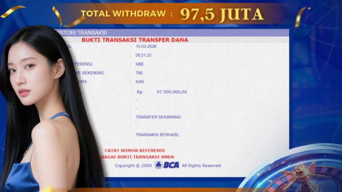 DEWATOGEL mengucapkan selamat kepada user id : KAR*** yang telah berhasil mendapatkan jackpot pada permainan LIVE CASINO DI DRAGON TIGER. Kemenangan sebesar Rp 97.500.000,-. telah dibayarkan LUNAS oleh pihak dewatogel kepada pemilik user id setelah yang bersangkutan mengisi formulir withdraw. Proses pencairan dana berlangsung sangat cepat hanya dalam waktu 5-10 menit sudah berada dalam rekening pemilik user id. Bukti transfer yang dapat anda lihat adalah bukti SAH / VALID yang langsung di dapatkan melalui bukti transaksi dari Bank yang digunakan untuk pengiriman dana pada rekening pemilik user id. Terima kasih kami sampaikan kepada para pengguna setia DEWATOGEL yang telah menggunakan situs kami, sebagai Bandar Terpercaya yang pastinya membayar semua kemenangan member hingga lunas. Apakah DEWATOGEL PENIPU ? Reputasi “DEWATOGEL TERPERCAYA” sudah sangat melekat. puluhan hingga ratusan ribu pengguna setia DEWATOGEL tetap menggunakan situs terbesar dan terbaik di Indonesia ini. Hapus rasa was-was dan khawatir anda, kemenangan anda berapapun PASTI dibayarkan hingga lunas.
