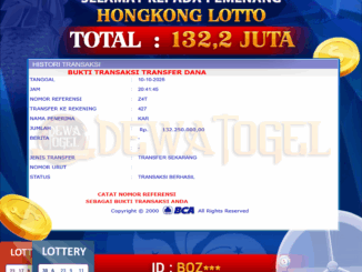 DEWATOGEL JACKPOT TOGEL DI HONGKONG LOTTO Rp 132.250.000,- LUNAS